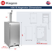 Kegco 15" Wide Outdoor Stainless Steel Built-In Right Hinge Kegerator