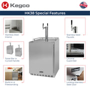 Kegco 24" Wide Outdoor Dual Tap All Stainless Steel Built-In Left Hinge Kegerator with Kit