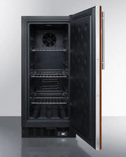 The SCFF1533BIF is front-breathing for built-in use under counters, but also features a fully finished black cabinet to allow freestanding use. The door features an integrated stainless steel frame that accepts full overlay panels for a custom look that blends into cabinetry (panel size: 14 11/16" W x 30" H and at least 3/4" thick). Users provide their own handle to complete the look.
